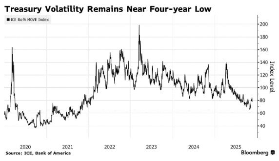 债券市场的波动率指标正反映出这种信心缺失:市场波动虽较上月所创的四年低点有所回升,但仍维持在历史低位附近。